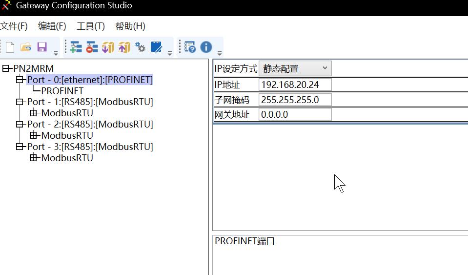 設(shè)備連接到網(wǎng)關(guān)的Profinet接口,使用RS485線纜將Modbus端設(shè)備連接到網(wǎng)關(guān)的RS485接口。