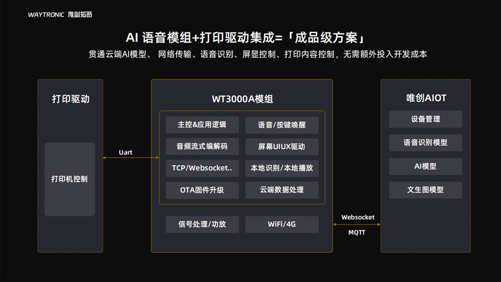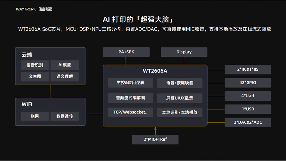 無需額外MCU:WT2606A單芯片完成語音、網(wǎng)絡(luò)、顯示、打印控制;