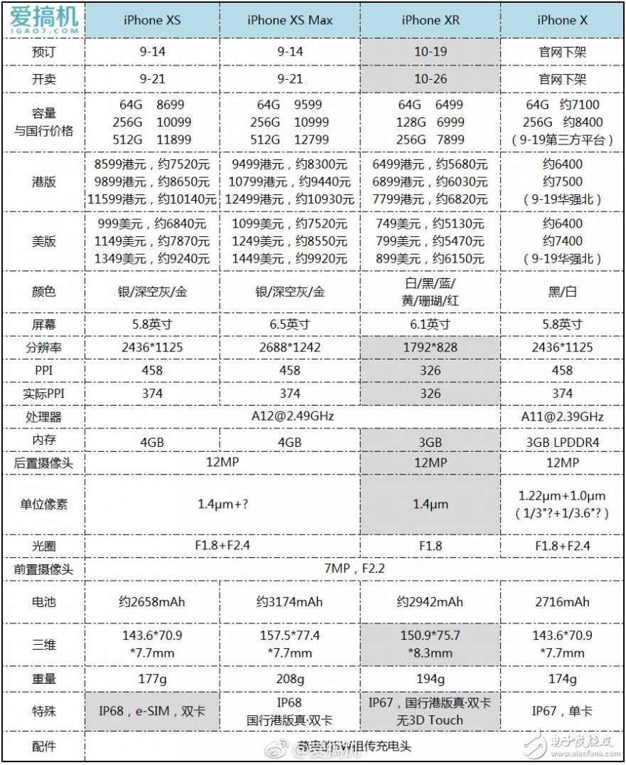 其他方面,iPhone XR電池約2942毫安時,配上828p高清LCD顯示屏,續(xù)航應該不錯,內(nèi)存和iPhone X一樣是3GB。iPhone XS約2658毫安時電池,蘋果表示其續(xù)航比iPhone X長30分鐘。