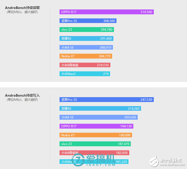性能方面,處理器、圖形、內(nèi)存分?jǐn)?shù)在采用驍龍710的同等級(jí)機(jī)型中,均表現(xiàn)在中上游,性能無(wú)需太多擔(dān)憂(yōu),對(duì)于大部分用戶(hù)來(lái)說(shuō)日常使用足矣。內(nèi)置存儲(chǔ)的跑分則相對(duì)沒(méi)那么突出,尤其是隨機(jī)寫(xiě)入,速度偏低。