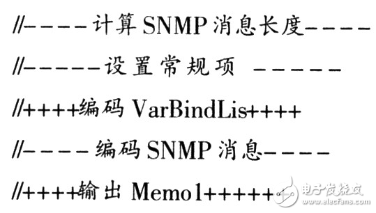 將UDP接收到的消息存入data1[]數(shù)組中,與消息的解析相反;將其每一部分添人所定義的SNMPMessage結(jié)構(gòu)中,以備解析顯示調(diào)用。以下為部分程序代碼: