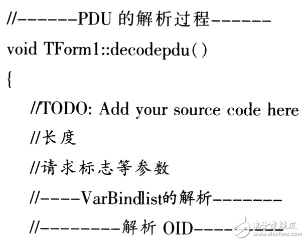 使用C++Builder提供的TNMUDP控件完成對SNMP消息的發(fā)送和接收,并存入Data1[]數(shù)組中,以備解析。以下為部分程序代碼: