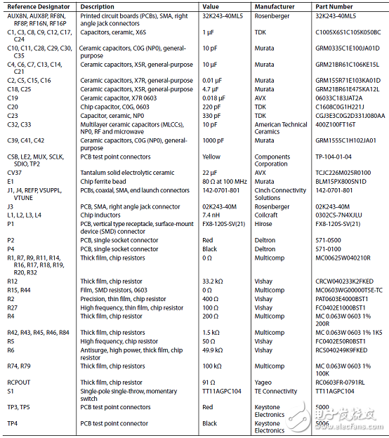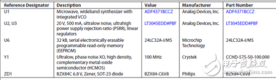 評(píng)估板EV-ADF4371SD2Z材料清單: