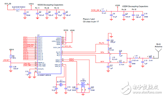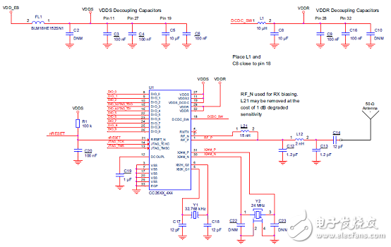 圖1.CC2640R2F 5x5外接差分(5XD)應(yīng)用電路