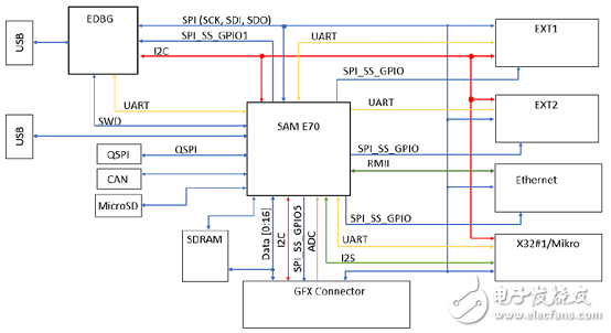 圖6.SAM E70 Xplained Ultra評估板信號級框圖