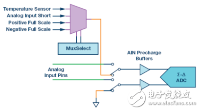 可以使用內部模擬診斷多路復用器驗證系統(tǒng)校準。LDO調節(jié)器輸出也可以通過這種方式進行驗證。