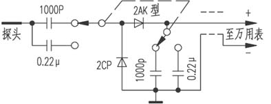 該附加裝置可配合萬用表測量收音機、電視機、無線遙控等設備的高頻振蕩電壓。探頭外殼宜用金屬材料。輸出線采用屏蔽線,且不宜太長。