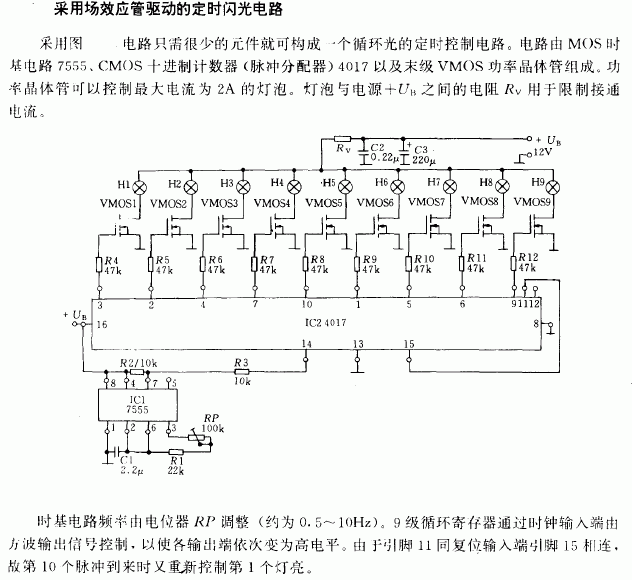 利用場效應(yīng)管驅(qū)動的定時閃光電路