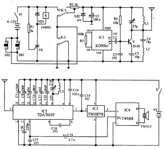 無(wú)線發(fā)射摩托車防盜報(bào)警器電路