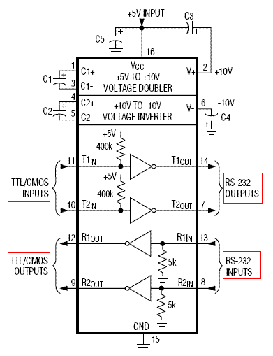 好了,現(xiàn)在給出MAX232的內(nèi)部電