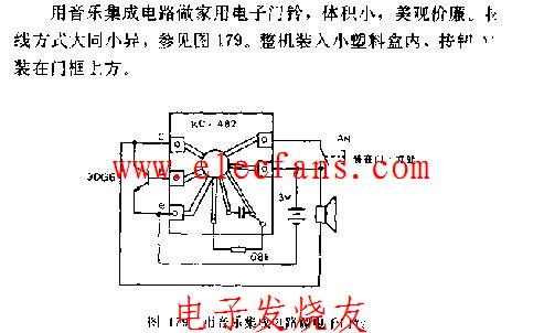 圖中所示是用HY-101音樂IC的音樂門鈴線路.HY-101是在HY-100系列基礎上派生出來 的另一種音樂集成電路.它和HY-100一