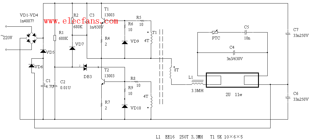 一般設(shè)計(jì)110V的EB比220V的EB難度要高點(diǎn),尤其是高功率因數(shù)的,下面以幾副常規(guī)的原理圖引領(lǐng)大家進(jìn)入文