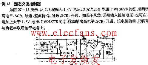 用微機進行交流控制的固態(tài)繼電器電路圖:采用微機進行交流控制的固態(tài)繼電器,微機輸出加到光電耦合器的二極管上,經(jīng)光電耦合器隔離后,光敏管輸出送至零壓