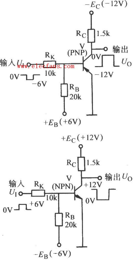 晶體管反相電路圖包括了,NPN晶體管反相器電路和PNP晶體管反相器電路.