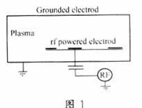 典型的RIE腔體包含兩個平行平板電極,接地電極位于腔體上部,射頻電極位于下部,基片置于其上。如圖1所示。