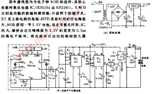 電子鐘整點定時負離子產(chǎn)生器電路圖