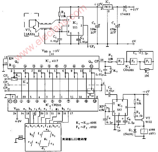 電子發(fā)燒友網(wǎng)>電子技術應用>電路原理圖>應用電子電路>十路溫度巡回檢測電路圖
