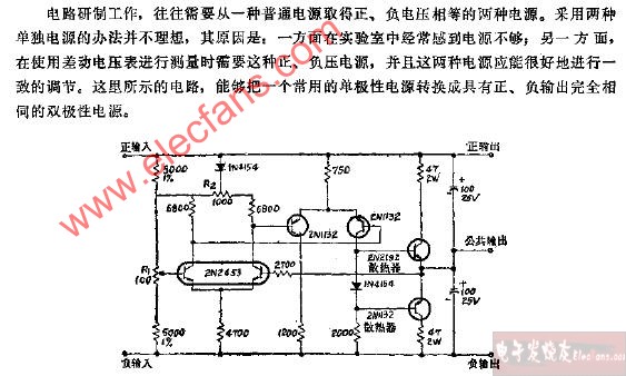 由單極性電源為雙極性電源的穩(wěn)壓器電路圖