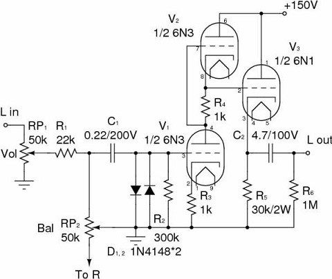 言歸正傳,上次介紹的功放采用了如下的電子管前級電路。
