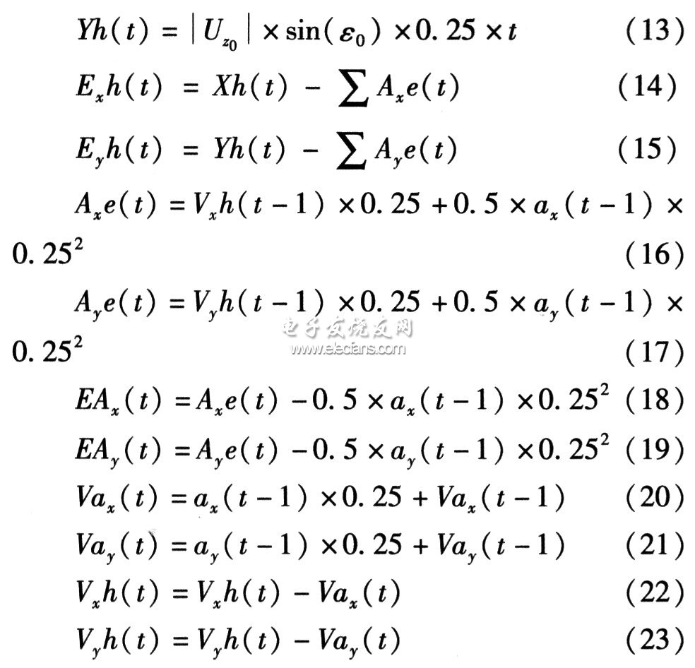其中,Vax(t)為xH方向上t-1時(shí)刻加速度在時(shí)刻生成速度,Vay(t)為yH方向上t-1時(shí)刻加速度在t時(shí)刻生成速度。