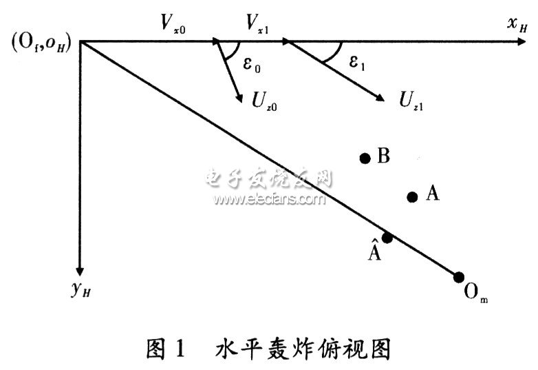 根據(jù)文獻(xiàn)[9,10],水平轟炸的俯視圖,如圖1所示。