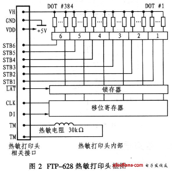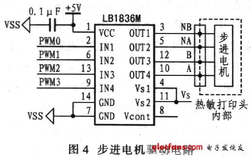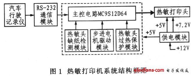 1803 行駛記錄儀的開發(fā)過程中,根據廠家要求,選用較為先進的熱敏打印機作為打印設備。但微型熱敏打印頭對打印時序和溫度要求較高,一旦控制不當極易造成打印頭燒毀。因此,在有合理的硬件設計的基礎上,軟件設計也十分重要。本文使用某些軟件設計替代了部分硬件電路,使打印機的控制電路得到了簡化。