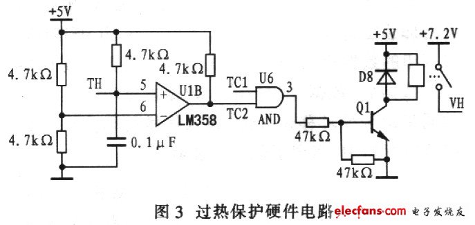 本例電路是微型熱敏打印機中一個打印頭過熱保護模塊,其功能就是對打印頭進行過熱保護。