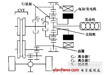 汽車動(dòng)力傳動(dòng)系統(tǒng)采用傳統(tǒng)的內(nèi)燃機(jī)和電動(dòng)機(jī)作為動(dòng)力能源,通過混合使用熱能和電能兩套系統(tǒng)開動(dòng)汽車。在低速小功率運(yùn)行時(shí)可以關(guān)閉發(fā)動(dòng)機(jī),采用電動(dòng)機(jī)驅(qū)動(dòng);而高速行駛時(shí)用內(nèi)燃機(jī)驅(qū)動(dòng);通過發(fā)動(dòng)機(jī)和電動(dòng)機(jī)的協(xié)同工作模式,將車輛在制動(dòng)時(shí)產(chǎn)生的能量轉(zhuǎn)化為電能,并積蓄起來成為新的驅(qū)動(dòng)力量.從而在不同工況下都能達(dá)到高效率。一般上有串聯(lián)式、并聯(lián)式、混聯(lián)式和復(fù)合式4種布置形式。