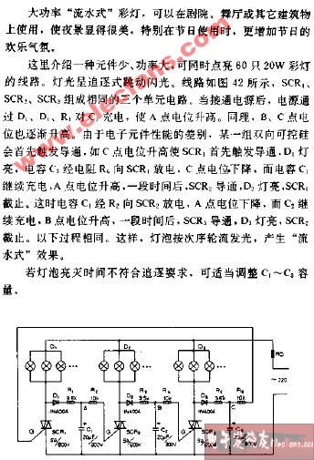 電子發(fā)燒友網>電子技術應用>電路原理圖>照明燈電路圖>大功率流水式控制彩燈的電路圖