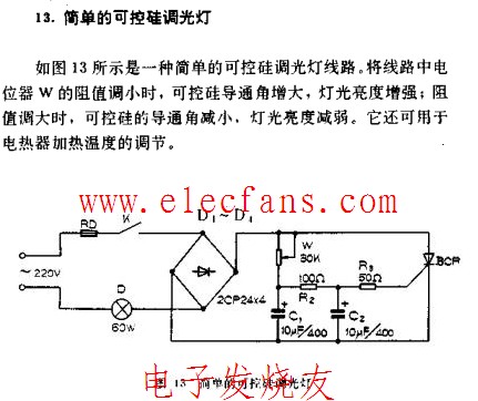 電子發(fā)燒友網>電子技術應用>電路原理圖>照明燈電路圖>簡單的可控硅調光燈電路圖