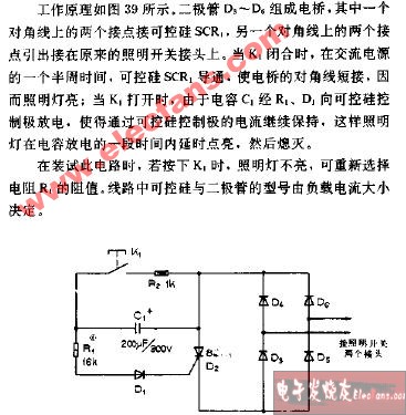 本文介紹的這種延時照明燈非常簡單,安裝也十分方便,將它直接連接于普通開關(guān)的兩端