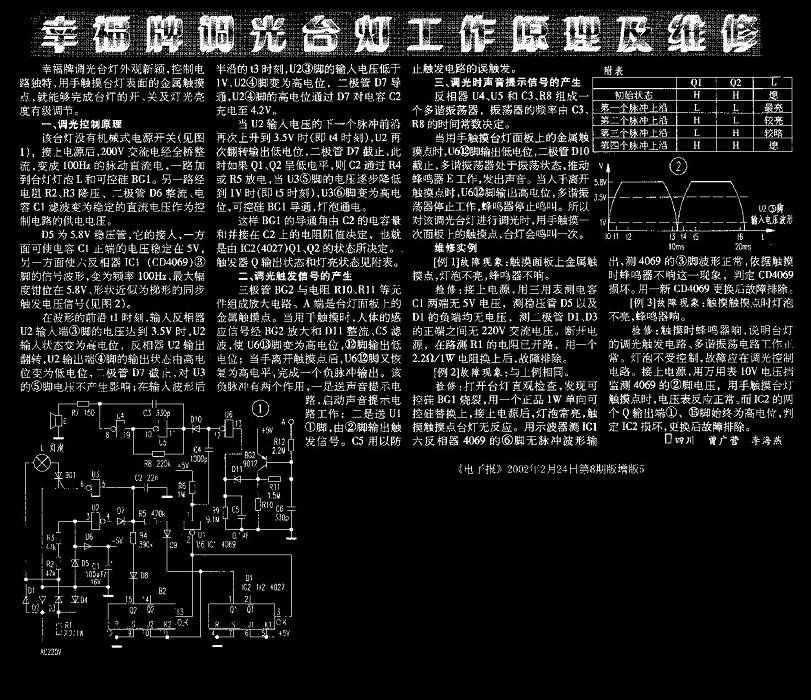幸福版調(diào)光臺燈電路工作原理及維修