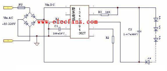 SA7527實(shí)現(xiàn)LED照明驅(qū)動(dòng)電路