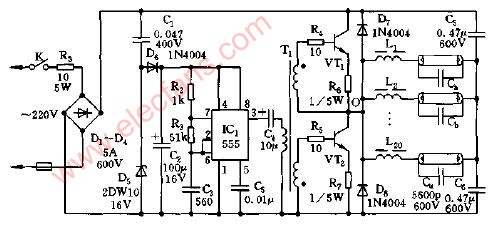 熒光燈電子節(jié)能鎮(zhèn)流器電路圖