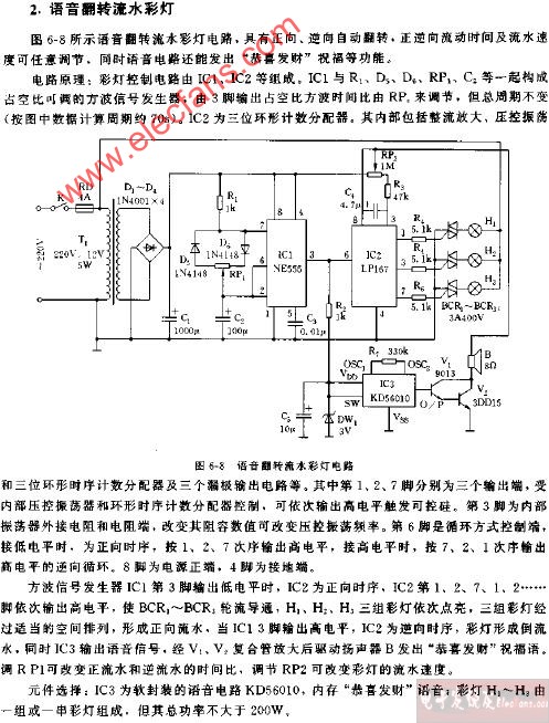 語(yǔ)音翻轉(zhuǎn)流水彩燈電路圖