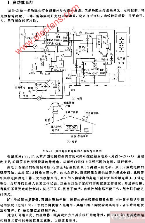 多功能臺(tái)燈電路和外型構(gòu)造示意電路圖