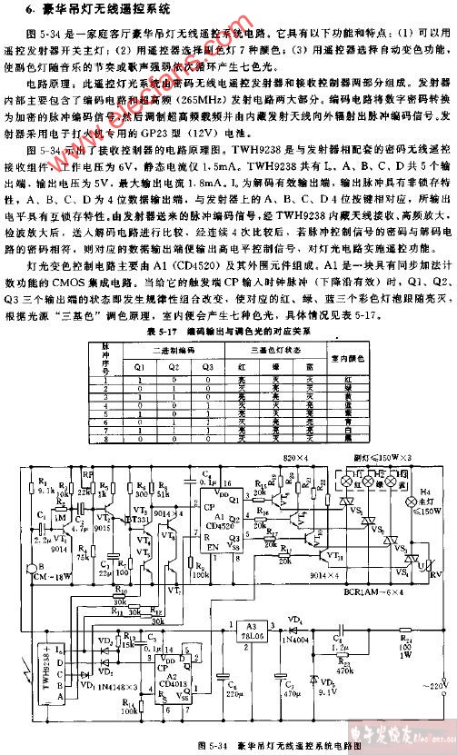 豪華吊燈無(wú)線遙控系統(tǒng)電路圖
