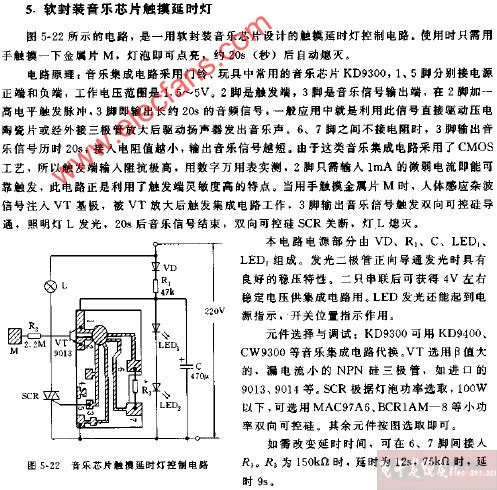 音樂芯片觸摸延時(shí)燈控制電路圖