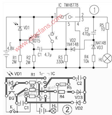 聲光控自動延時(shí)照明燈開關(guān)電路圖