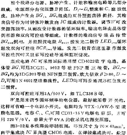 彩燈控制電路可控制6KW的彩燈,具有控制功率大,耦電省,壽命長(zhǎng),噪聲低,工作可靠等優(yōu)點(diǎn)。適用于大型廣告,燈展,舞廳,劇場(chǎng)等裝飾之用。