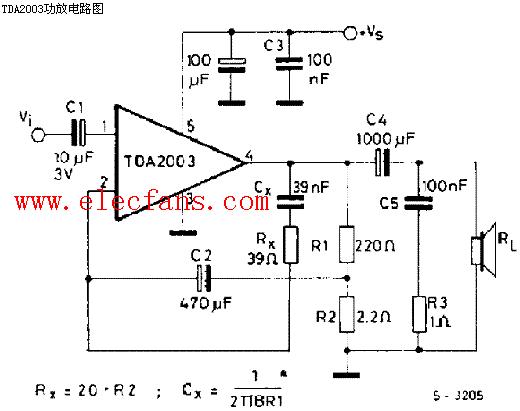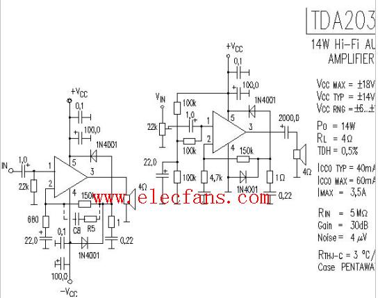 tda2003中文資料匯總(tda2003引腳圖及功能_特性參數(shù)及應(yīng)用電路圖)