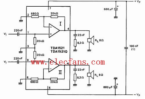 13875 外圍元件最少的25W功放電路TDA1521A,tda1521 power amplifier