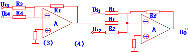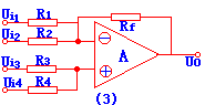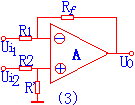 輸入信號分別加之反相輸入端和同相輸入端,電路圖如圖(3)所示: | |