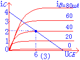 解:(1)畫直流負(fù)載線:因直流負(fù)載方程為UCE=UCC-iCRC | |