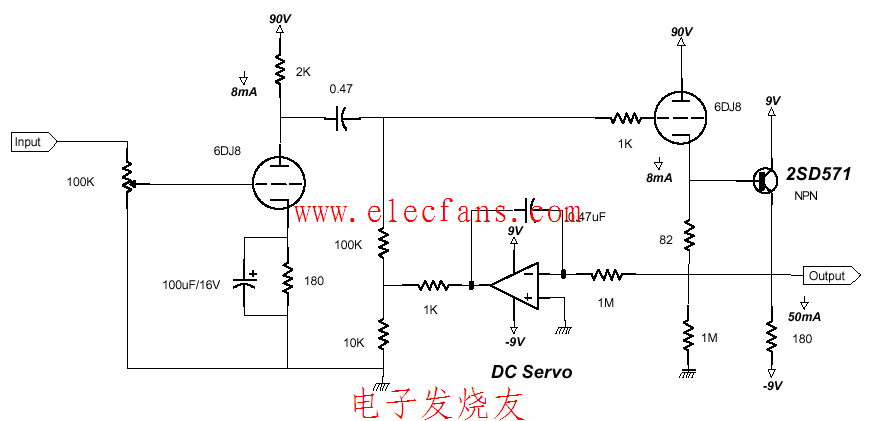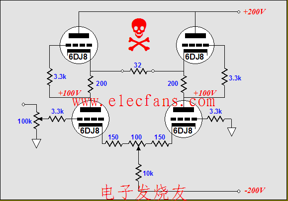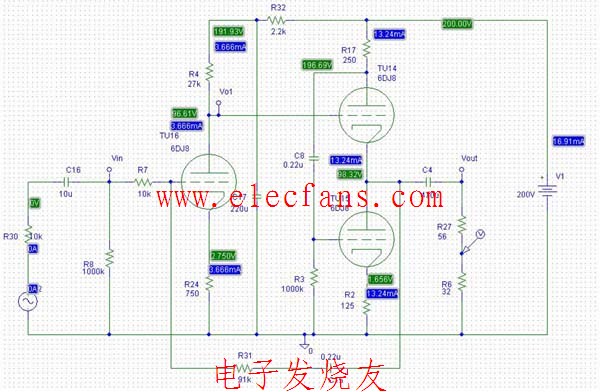 如圖所示電路,用雙三極管ECC82(相當(dāng)于E802C、E82CC、與北美12AU7、國
