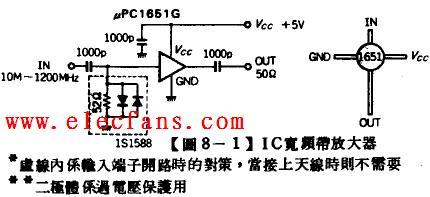 關(guān)鍵字:UPC1651,天線放大器電路圖