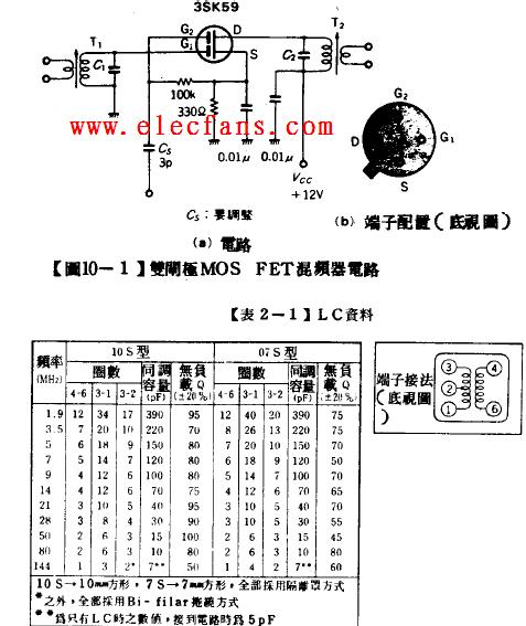 雙柵MOS場效應(yīng)管混頻器電路圖