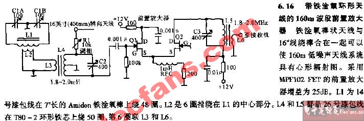 帶鐵金氧環(huán)形天線的160m波段前置放大器電路圖