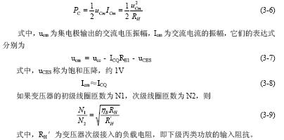 在交流負載線AB 的中點,此時集電極的負載電阻RH 稱為最佳負載電阻。集電極的輸出功率PC 的表達式為: