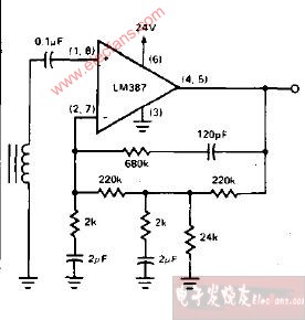 這是水聽器前置放大器電路圖,設(shè)計用于 EDO6166 型傳感器,取自 Burr-Brown 的 OPA27/37 應(yīng)用筆記。